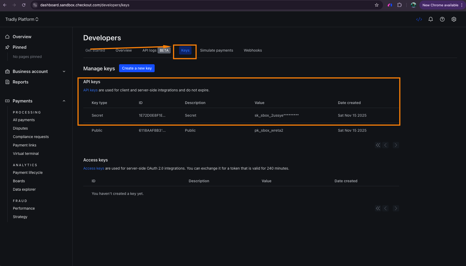 https://dashboard.sandbox.checkout.com/developers/keys/1E72D0E8F1EC6B8DD29A805C4F908395