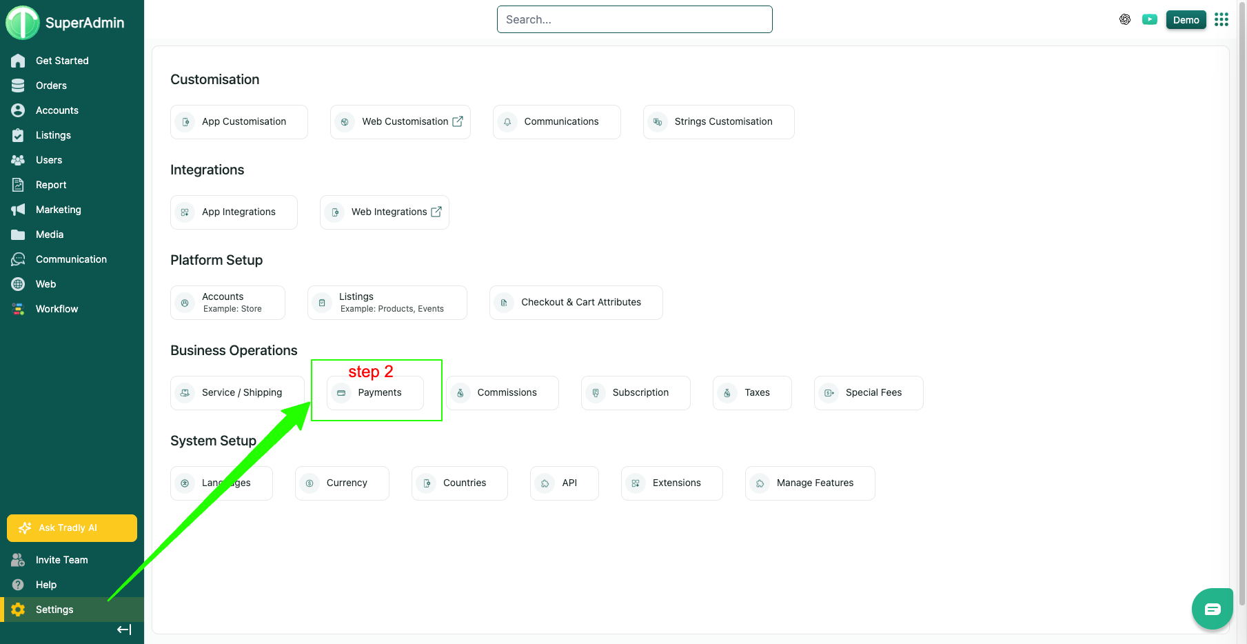 To start using the online payment platform, you will need to sign up for an account at http://onlinepaymentplatform.com/. Once you have created an account, you can then integrate the payment gateway into Tradly by going to `Superadmin > settings > Payment Gateways`