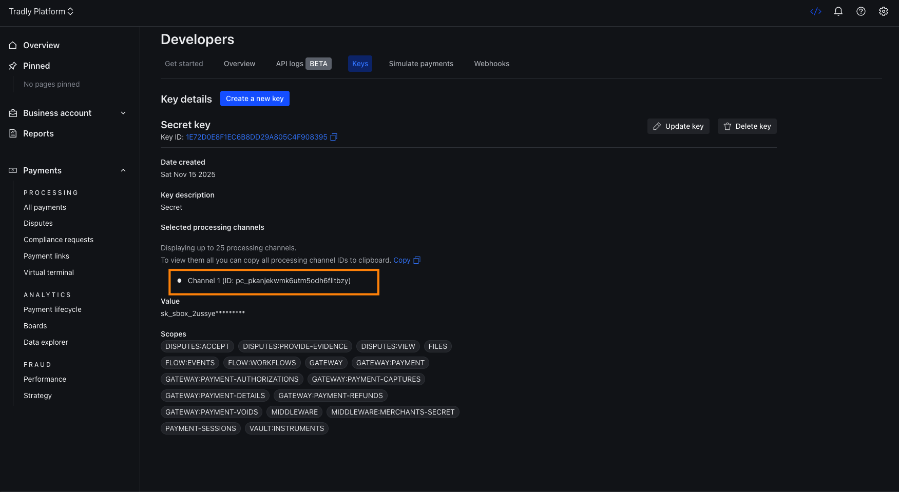 Processing Channel ID | Paste the pc_XXXXXXXXXXXX ID |