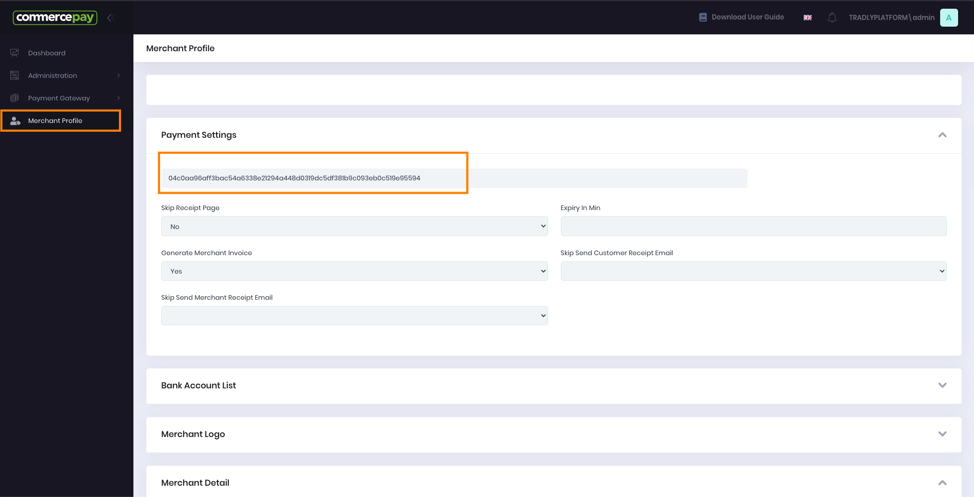 This Secret Key is required for API authentication between Tradly and CommercePay.