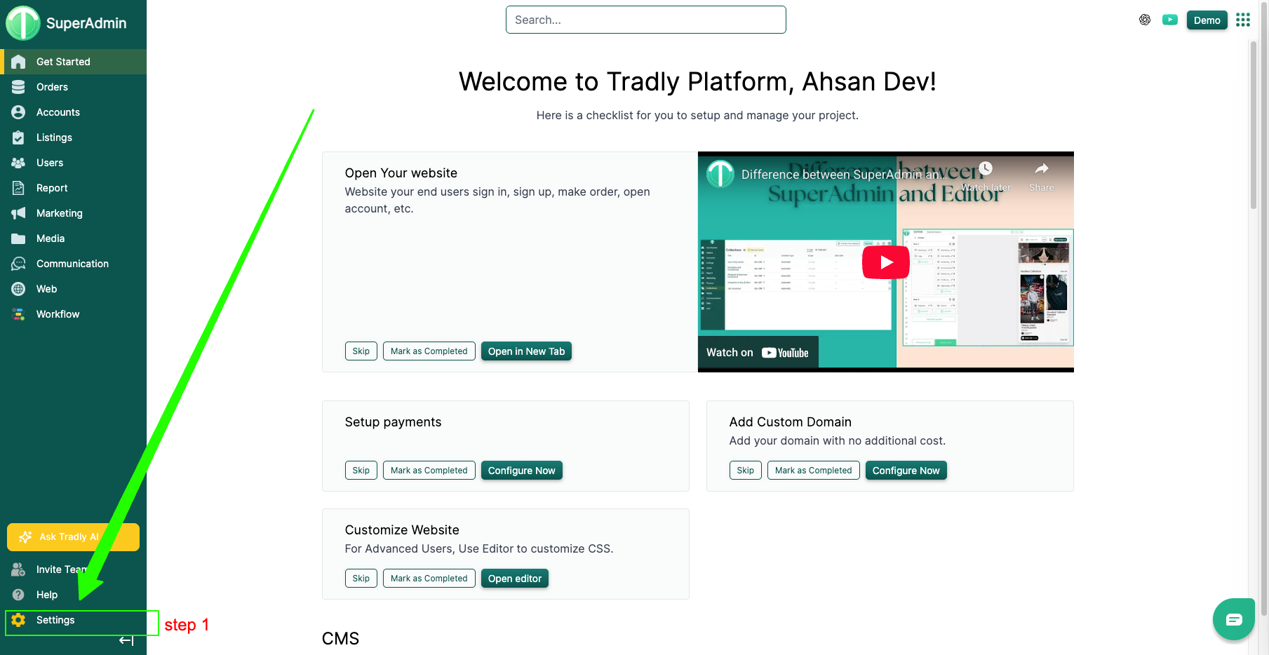 Tradly SuperAdmin: https://superadmin.tradly.app