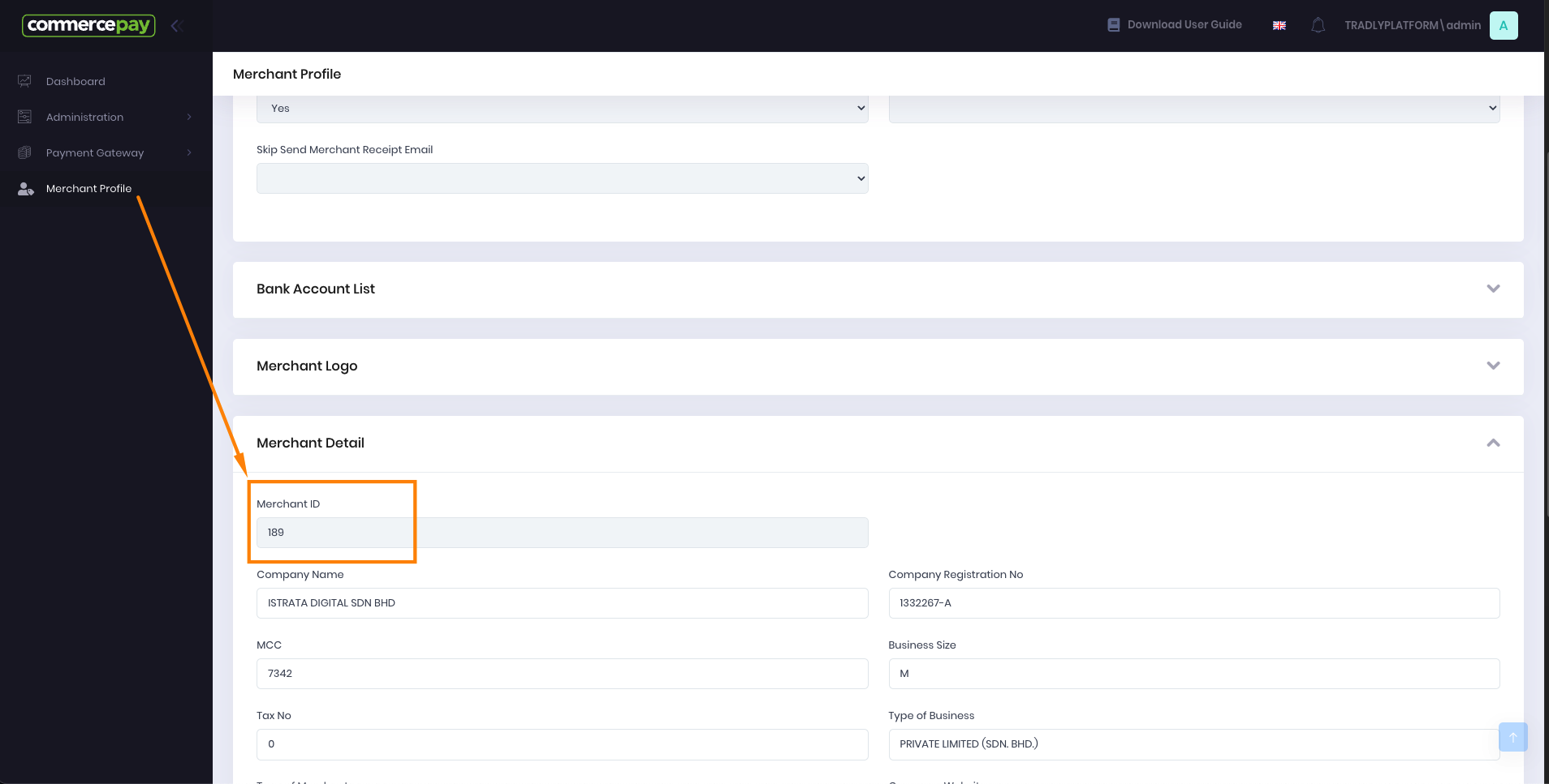 Merchant ID | Enter your Merchant ID (e.g., 189) |