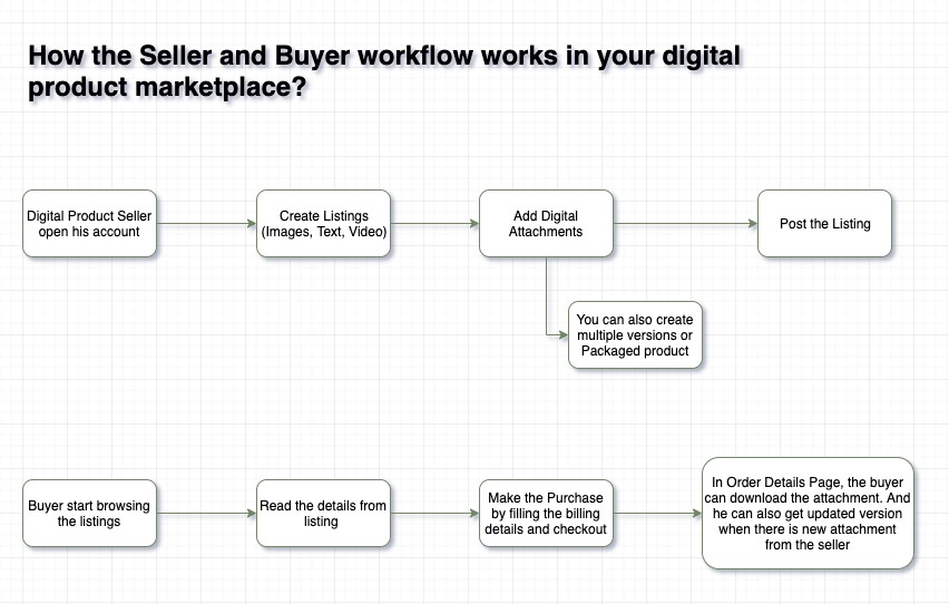 One thing you need to be careful when choosing a stack to build your digital product marketplace is focused platform. Shopify or Wordpress are not developed as marketplace first platform to launch your marketplace. They are pure b2c platform where you can sell your products as a single storefront. Indeed there are so many wordpress plugins & shopify apps that can convert your single storefront into marketplace. And it may look easy and possible on your first few days of marketplace building. But when the days pass and when your transactions started coming in, that’s where you will face operational issues. Simple examples like you as a marketplace cannot change the flow of buying experience or seller onboarding experience or seller payout operations or how the product can be packaged into variants/add-ons/preview products, etc.