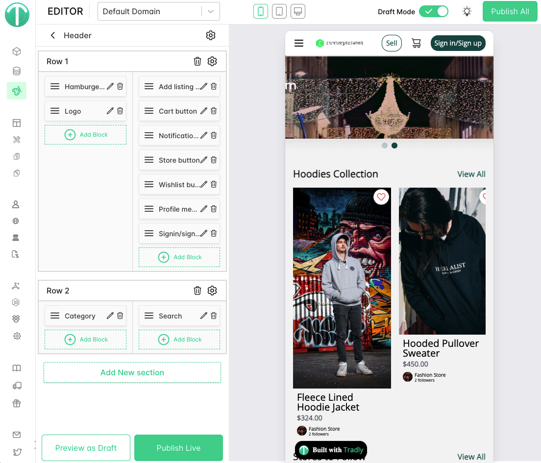 Marketplace Builder Platforms like Tradly are marketplace first solutions. You have deeper features as building blocks to customise your marketplace, control the marketplace operation and launch as you prefer.