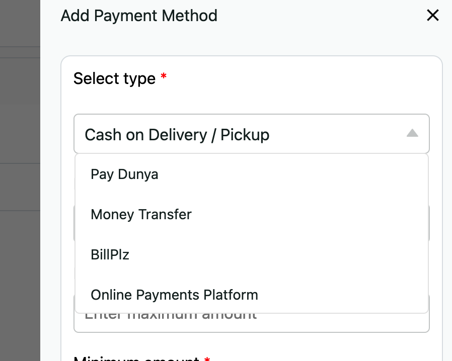 - Limit minimum total order size on Payment method level